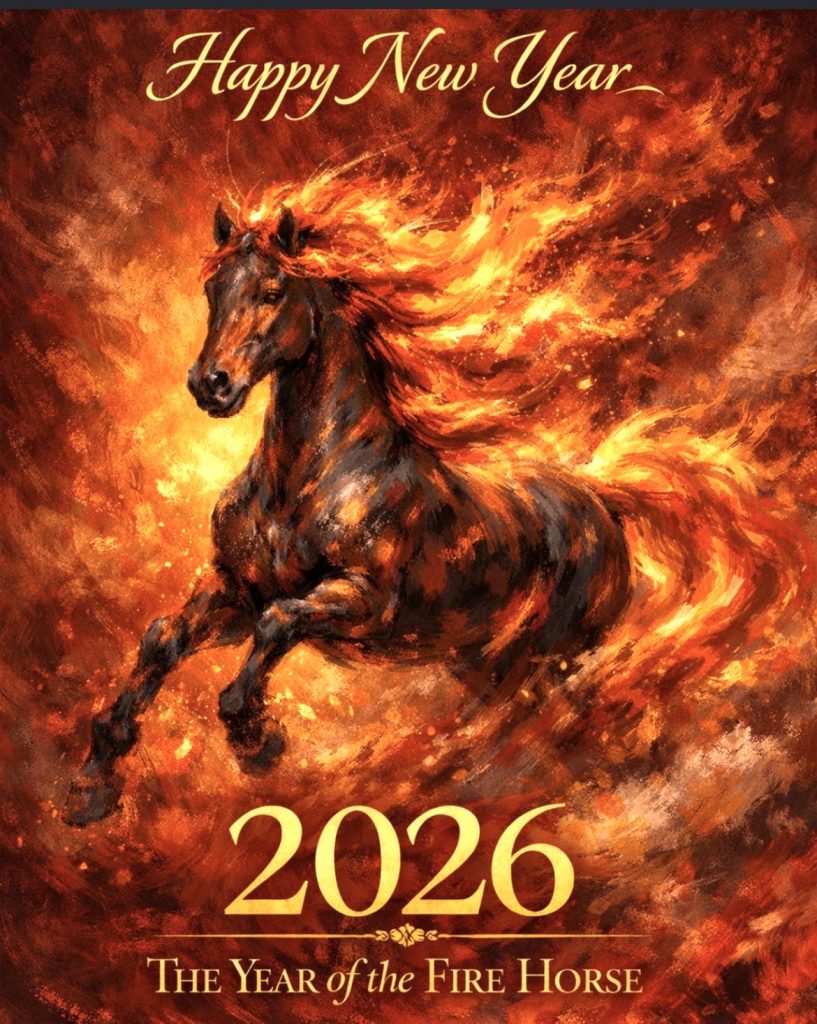 🐎🔥 Happy Chinese New Year 2026 🐎🔥 Year of the Fire Horse (火马年 · 赤马年) 2026 welcomes the rare and powerful Year of the Fire Horse, a cycle that appears only once every 60 years. In the language of the zodiac, this is the year of Yang Fire Horse (丙午) — a convergence of vitality