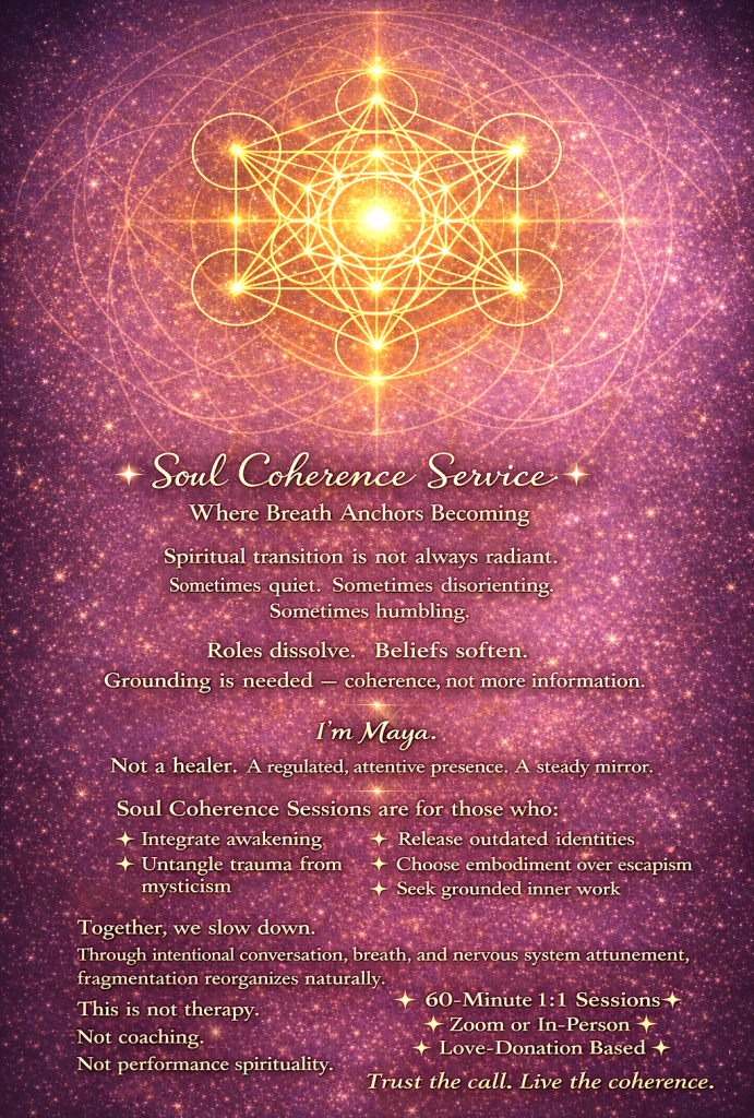 I walk this path not to stand above anyone, but to stand with those who are remembering. My intention is simple: to hold a steady, coherent space where others can hear themselves more clearly. Not to teach. Not to fix. Not to lead. But to listen deeply enough that truth has room to rise. I