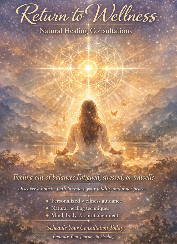 “Return to Wholeness” is an invitation to pause, recalibrate, and consciously realign your body, mind, and inner rhythm through a personalized well-being consultation designed to support clarity, resilience, and balanced living in a world that constantly pulls you outward. In a culture of overstimulation and unconscious consumption, many seekers feel fatigued, scattered, or disconnected from